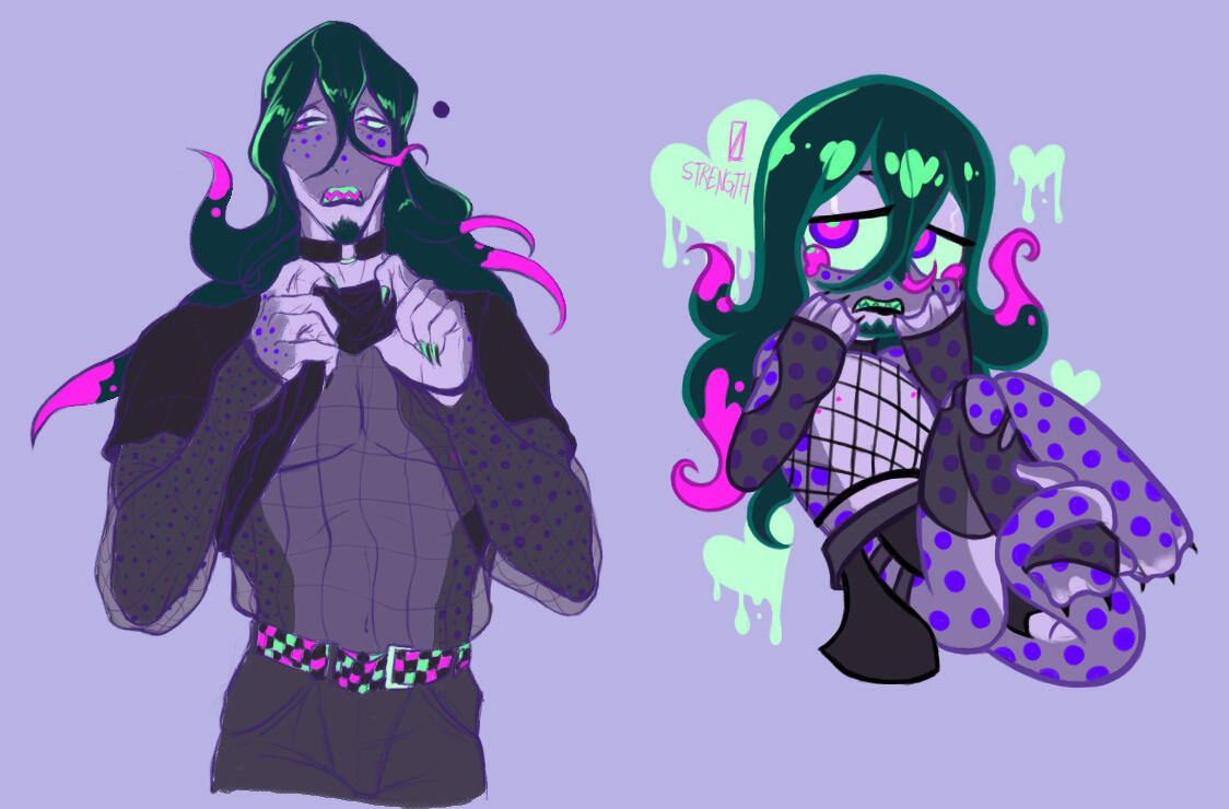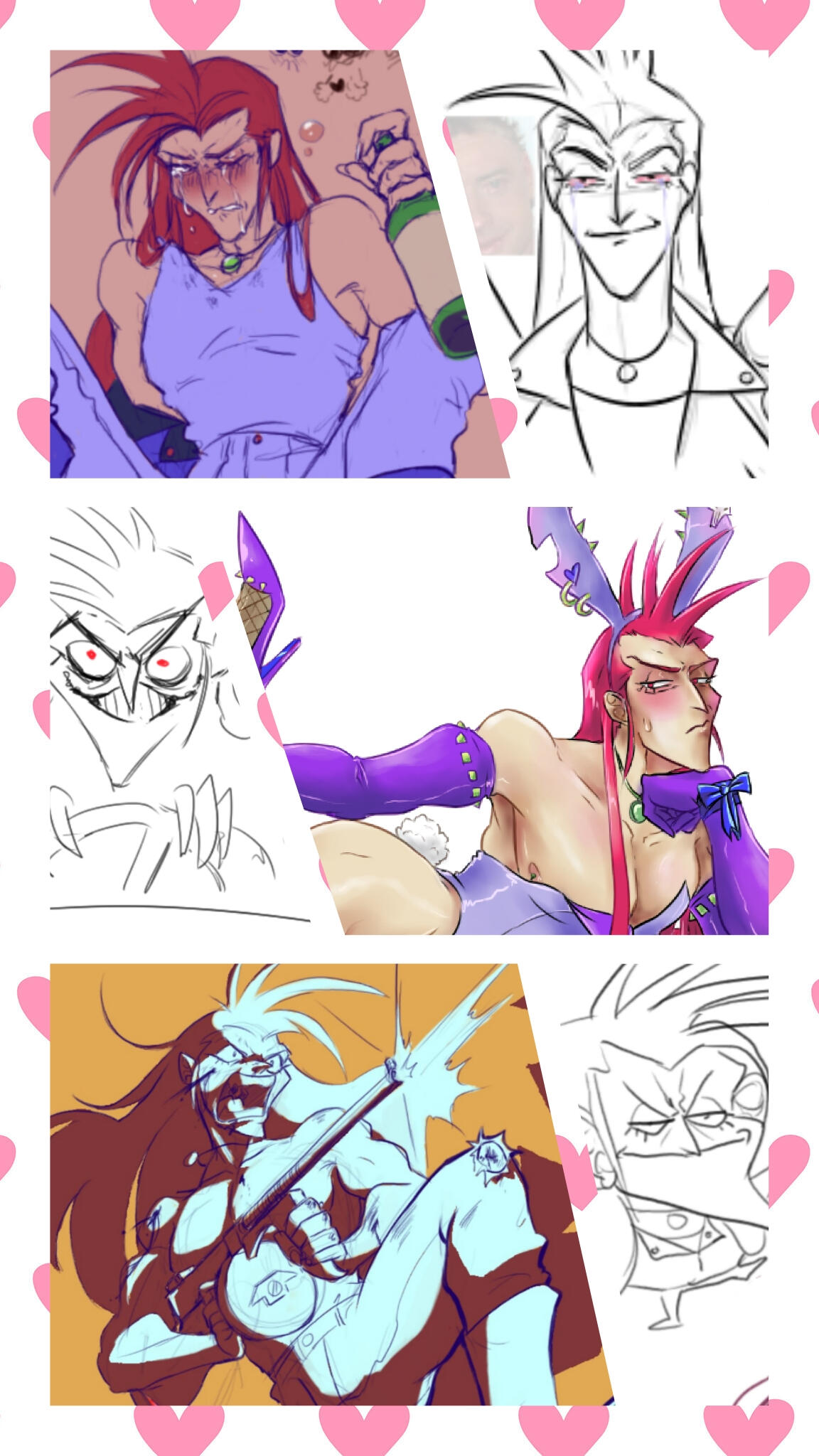 • Erotica involving multiple partners and the glorification of sex work. While it is a necessary industry for many, and an occupation I happily respect, I highly disencourage it as it is a very dangerous industry full of exploitation and abuse. The depictions of sex work in my work are merely idealized, utopian fantasies and do not depict the industry accurately at all.• Sexual depictions of more mature adults(ie. 45+) and potentially large age gap relationships between adults at least 19 years old, more likely than not 25+ because even under 20 just feels nasty and wrong. I just really like older people, they're charming.• Unrealistic body proportions and capabilities, mostly used as exaggeration or mere fantasy. This can be seen mostly in the weight distribution and elasticity of some parts in the form. In some cases, the term "body horror" may even apply. Speaking of horror, there are gonna be monsters often present, usually in the form of mutants, spectres or otherwise.• Content matter involving fictional characters that are a product of prejudiced or outdated views, don't have a shred of good in their heart or are troubled enough that interest in them alone is already considered a red flag. Unfortunately, these kinds of characters are often given specific character designs and smaller, less relevant traits to their importance that are very endearing to me and rare, if not unseen, in protagonists. Characters on this list can often be described as: cis or campy characters portrayed as homophobic/transphobic stereotypes used as cannon fodder for jokes about the LGBTQ+, heinous war criminals, serial killers, sexual offenders, sadists, sociopaths and psychopaths, etc...)• Dubcon, or situations where consent may be dubious (Ie. The implication of there not being a choice despite both or more participants very enthusiastically consenting, inanimate objects being anthropomophicized or otherworldly creatures without blatantly obvious sentience, consensual intoxication or chemical inbalancers, bondage, sudden or unexpected intimacy). Dubcon does not include non-consensual intoxication, extortion, deception or any other situation where the only reason people say it's not rape is because it's not violent enough. That's just disgusting.•Relationships that are toxic, abusive and/or purely pragmatic in purpose, devoid of any sincere feelings or sympathy. Obviously I wouldn't wish such relationships on anyone in real life, but when you're working with true villains in the realm of fiction and you don't want to paint them as the good Samaritan they never could be, it's bound to happen. This type I mostly just write/draw for the angst or for self-reflection on my own survived experiences.• Mild levels of BDSM/sadomasochism. Nothing too harsh, just the occassional thing that will sting for a day or two and maybe leave a mark for a bit. Who doesn't love a bit of kinkiness, after all?